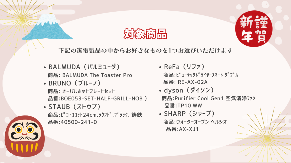 【5万円相当の人気ブランド家電】をプレゼントいたします。