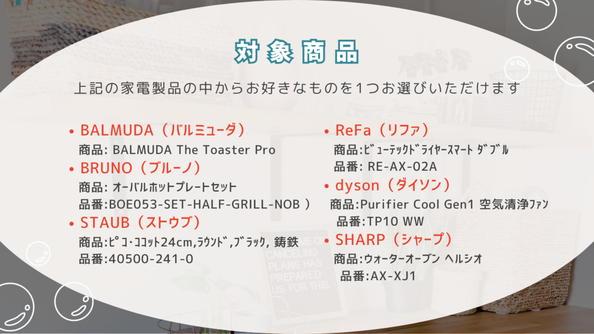 【5万円相当の人気ブランド家電】をプレゼントいたします。