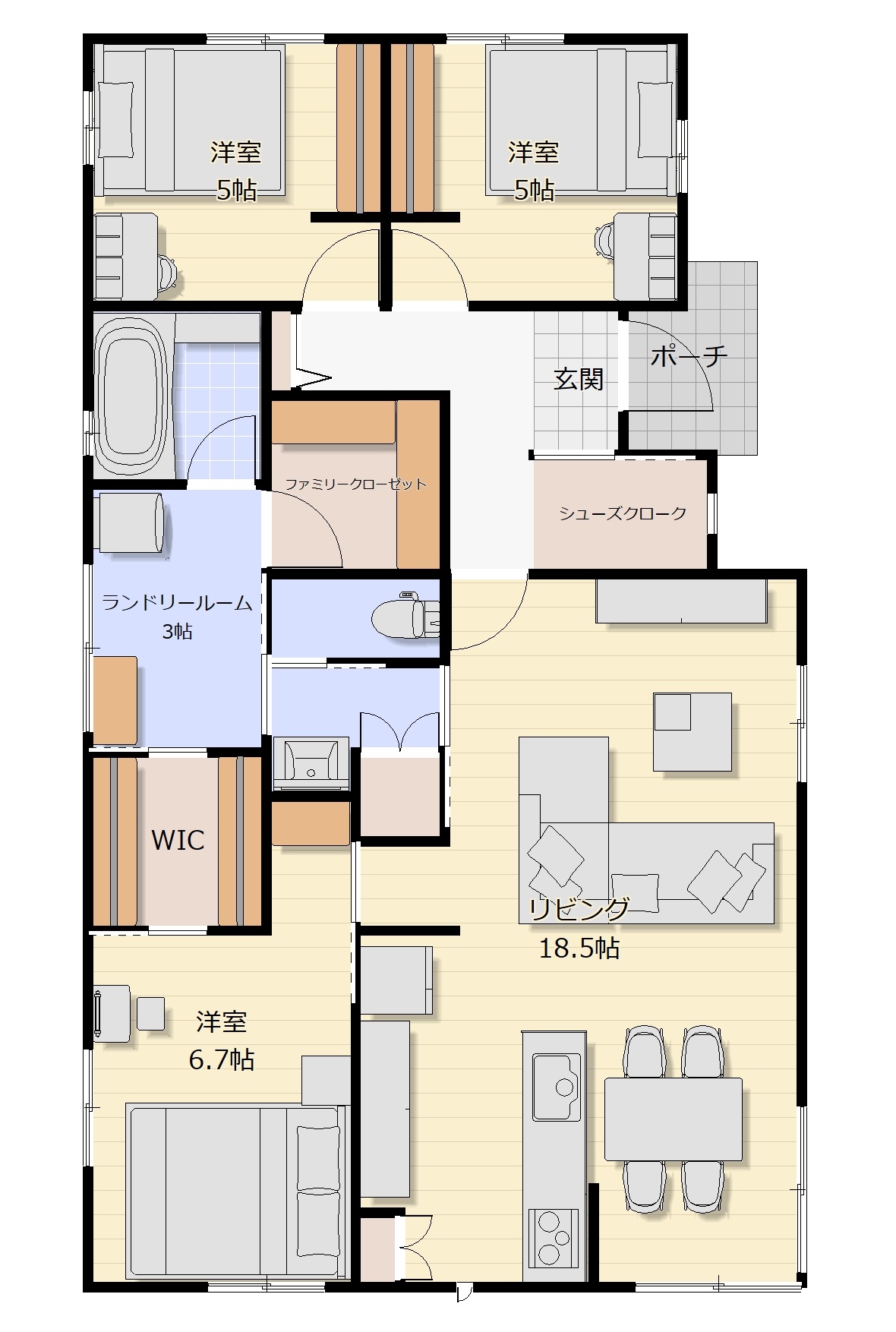 | 間取り / 詳細 | 3LDK LDK 18.5帖/洋室 6.7帖/洋室 5帖/洋室 5帖 |
