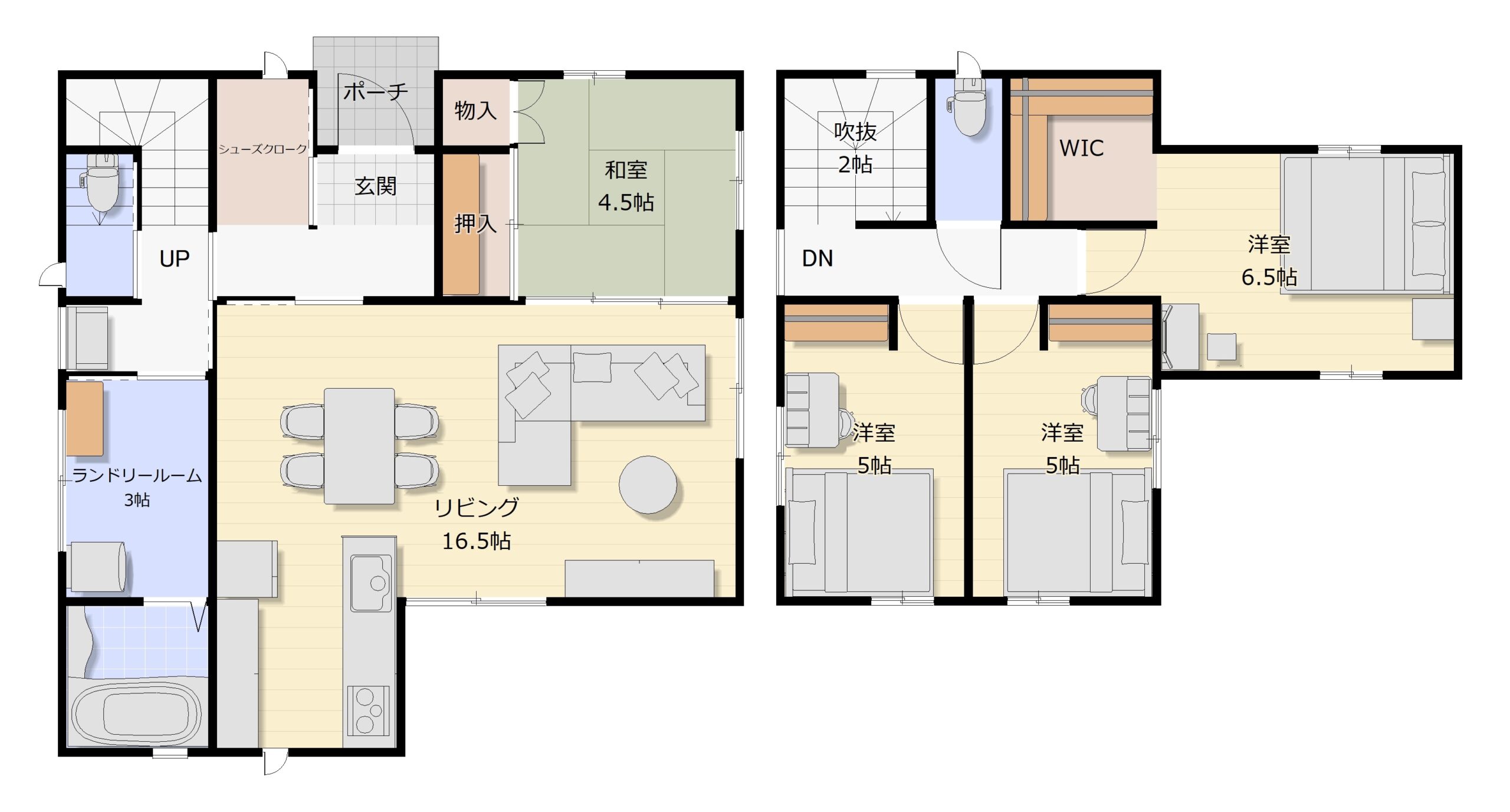| 間取り / 詳細 | 4LDK LDK 16.5帖/洋室 6.5帖/洋室 5帖/洋室 5帖/和室 4.5帖 |